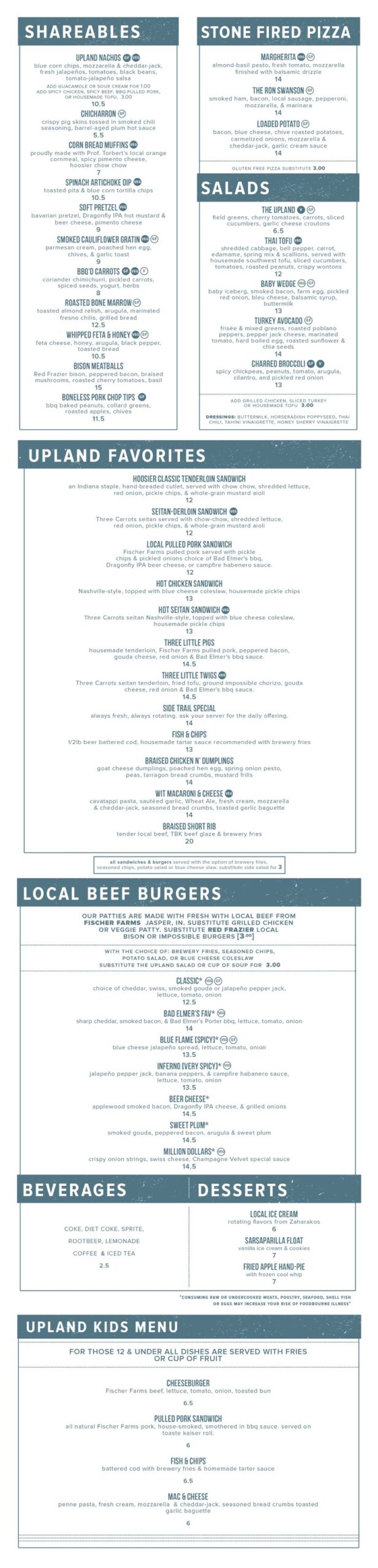 Upland Columbus Summer Menu
